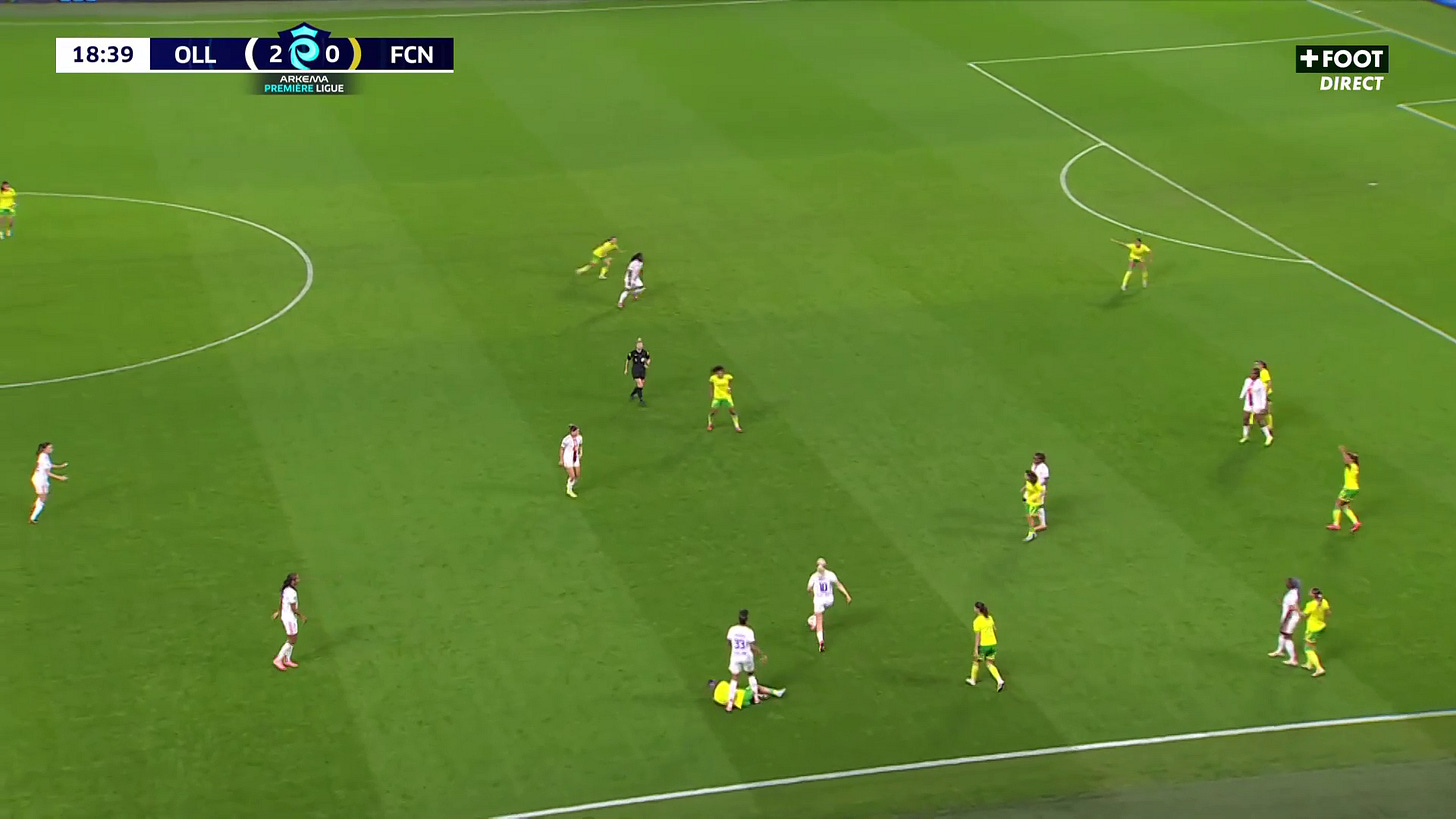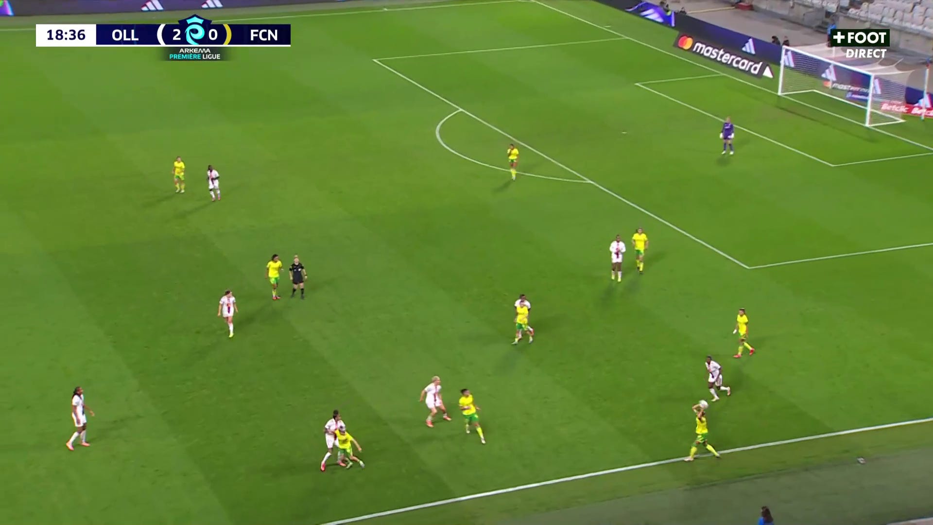 By the time the throw reaches the Nantes player, it’s too late. Tarciane has already made sure there’s no way past. The Nantes player ends up on the floor, she regains possession, and Lyon move away with the ball. Nothing about it feels dramatic in real time. It’s just how she defends. She makes routine in-game actions feel confrontational, and she does it without blinking.