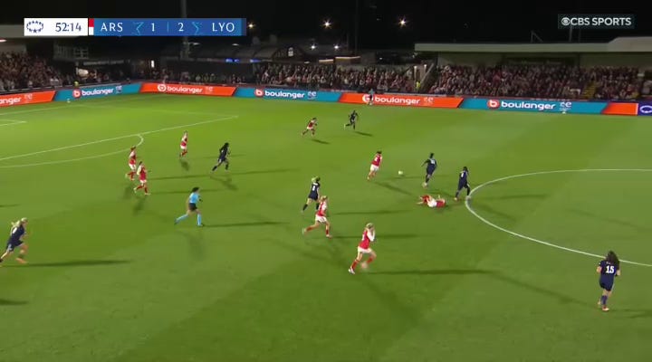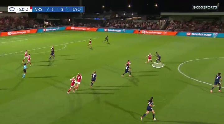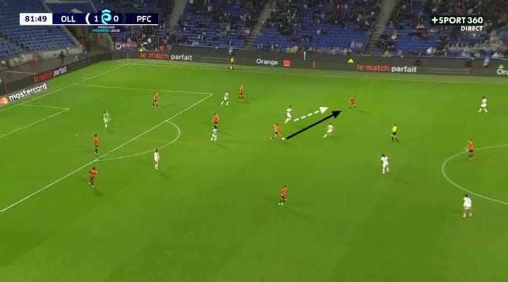 It’s these small sequences that you can almost miss in the chaos of a match that tell you everything. Tarciane’s desire to press, to chase, to win pushes Lyon further. She sets in motion a series of chain reactions by refusing to be passive for a second.